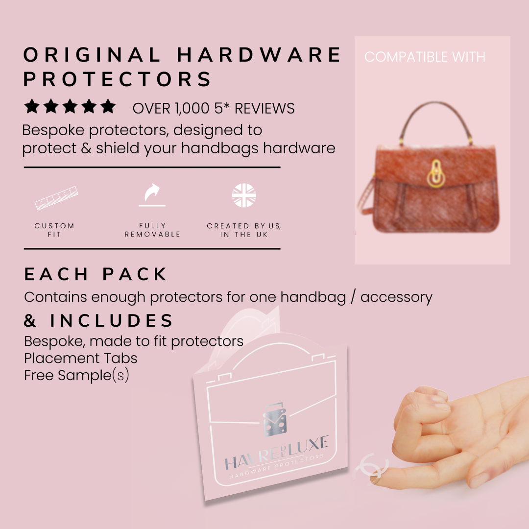 Keep your beloved designer bags and accessories flawless with the original Handbag Hardware Protectors. Protect your investment from scratches and scuffs with our premium, custom-fit hardware protectors.