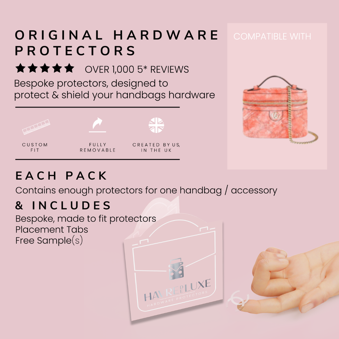 Keep your beloved designer bags and accessories flawless with the original Handbag Hardware Protectors. Protect your investment from scratches and scuffs with our premium, custom-fit hardware protectors.