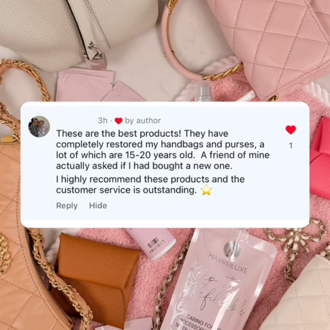 Your bespoke protector pack includes everything needed for one handbag or accessory, offering comprehensive protection that extends the life of your luxury items.