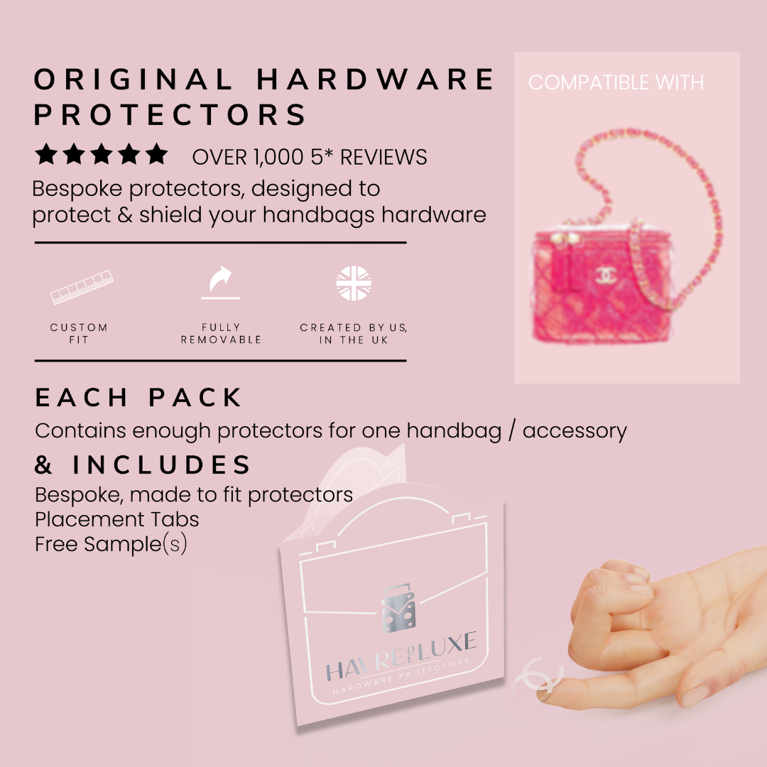 Keep your beloved designer bags and accessories flawless with the original Handbag Hardware Protectors. Protect your investment from scratches and scuffs with our premium, custom-fit hardware protectors.