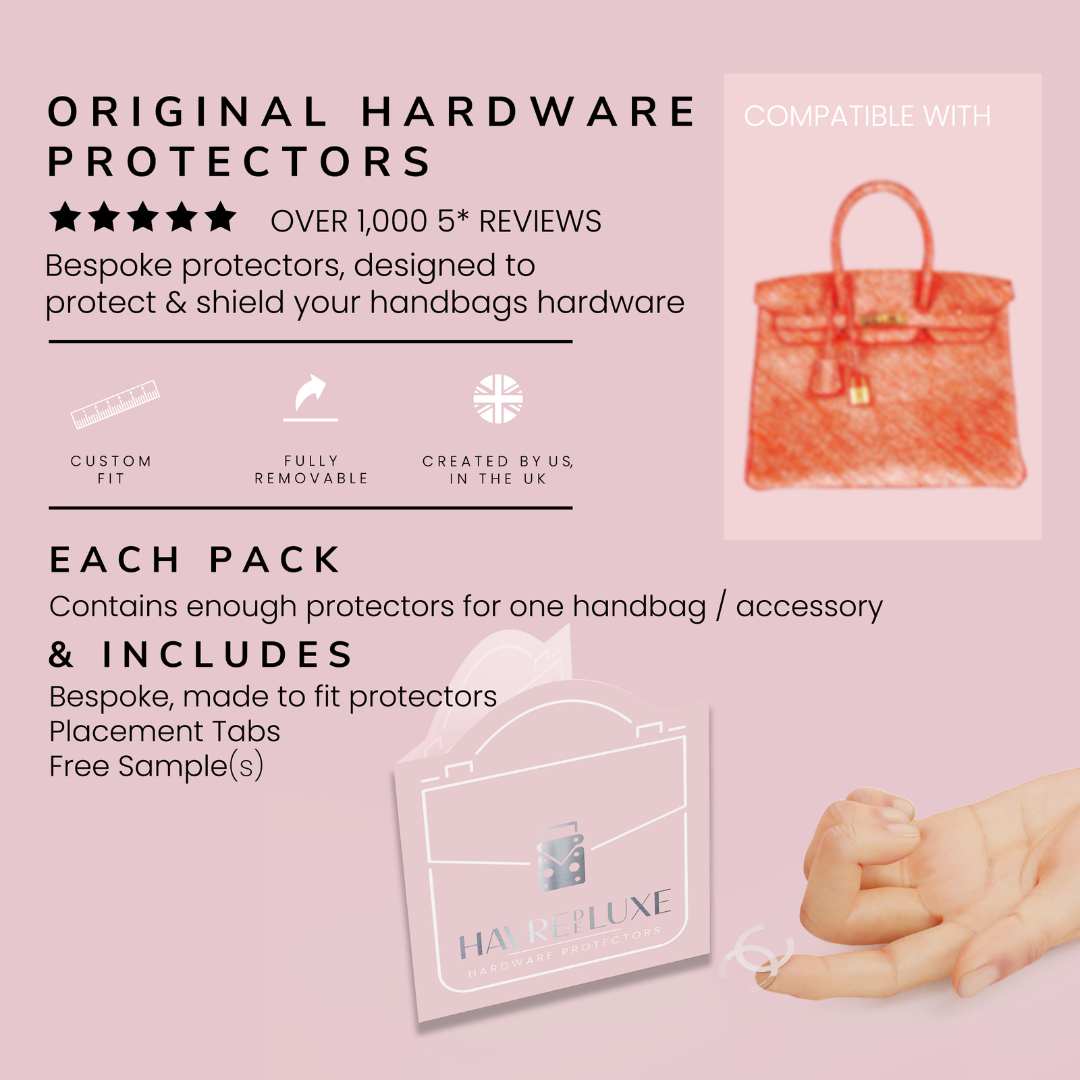 Keep your beloved designer bags and accessories flawless with the original Handbag Hardware Protectors. Protect your investment from scratches and scuffs with our premium, custom-fit hardware protectors.
