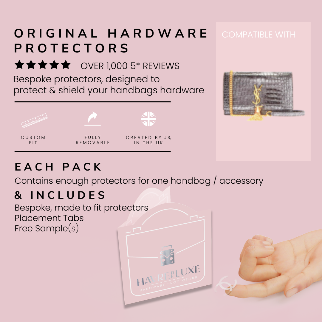 Keep your beloved designer bags and accessories flawless with the original Handbag Hardware Protectors. Protect your investment from scratches and scuffs with our premium, custom-fit hardware protectors.