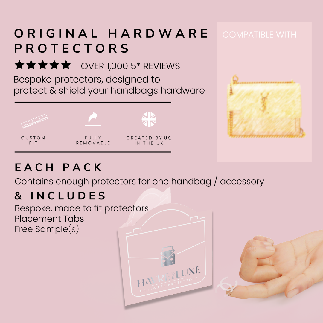 Keep your beloved designer bags and accessories flawless with the original Handbag Hardware Protectors. Protect your investment from scratches and scuffs with our premium, custom-fit hardware protectors.