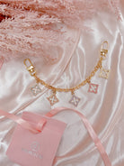 Premium Design: Featuring a mix of seven charms set on a gold link chain and topped with a luxurious gold chain for added elegance. The piece is completed with two gold snap hooks, making it easy to attach to your favorite bags.