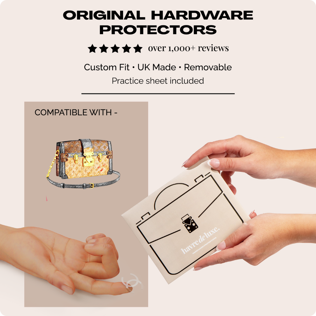 Precision-engineered fit Each protector set is custom-designed for your specific bag model. We've created protectors for over 250 handbag styles - from Hermès Birkins to Chanel Boy Bags to Louis Vuitton Pochette Metis hardware.