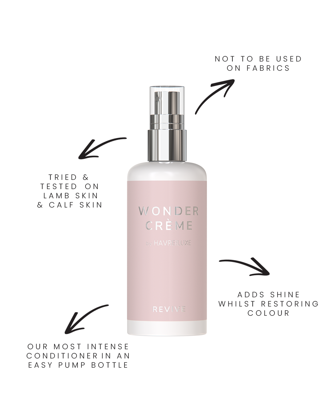 我们的 Wonder Crème 就像您的皮革配饰的超级保湿霜,它不仅可以强烈调理,还有助于修复磨损和褪色的皮革。