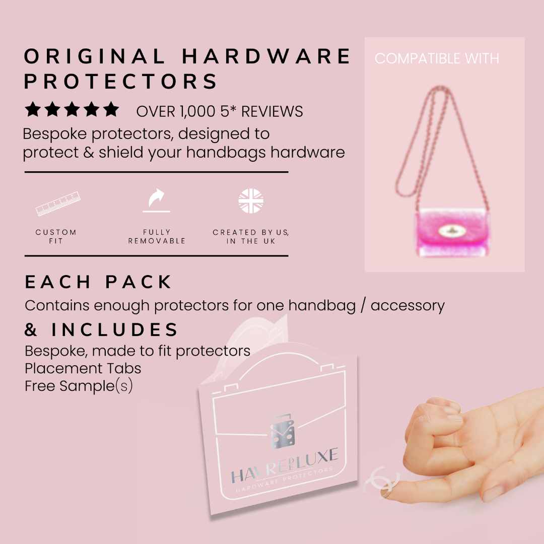 Keep your beloved designer bags and accessories flawless with the original Handbag Hardware Protectors. Protect your investment from scratches and scuffs with our premium, custom-fit hardware protectors.