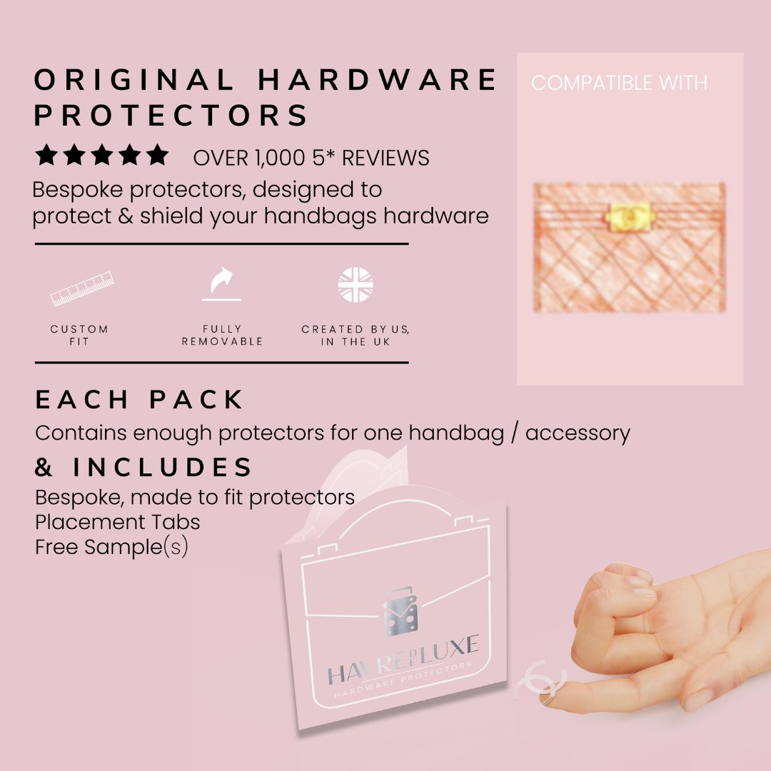 Keep your beloved designer bags and accessories flawless with the original Handbag Hardware Protectors. Protect your investment from scratches and scuffs with our premium, custom-fit hardware protectors.