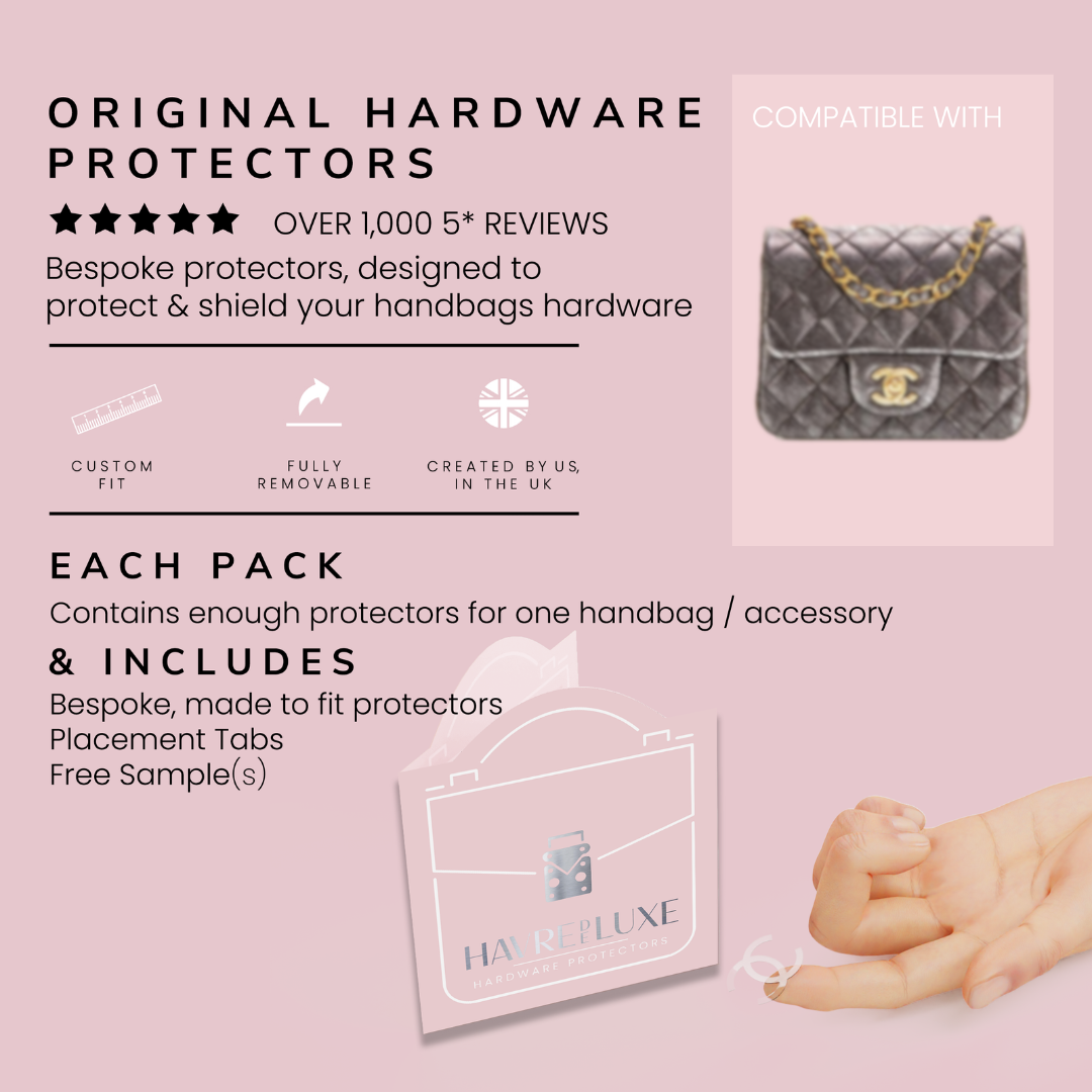 Keep your beloved designer bags and accessories flawless with the original Handbag Hardware Protectors. Protect your investment from scratches and scuffs with our premium, custom-fit hardware protectors.