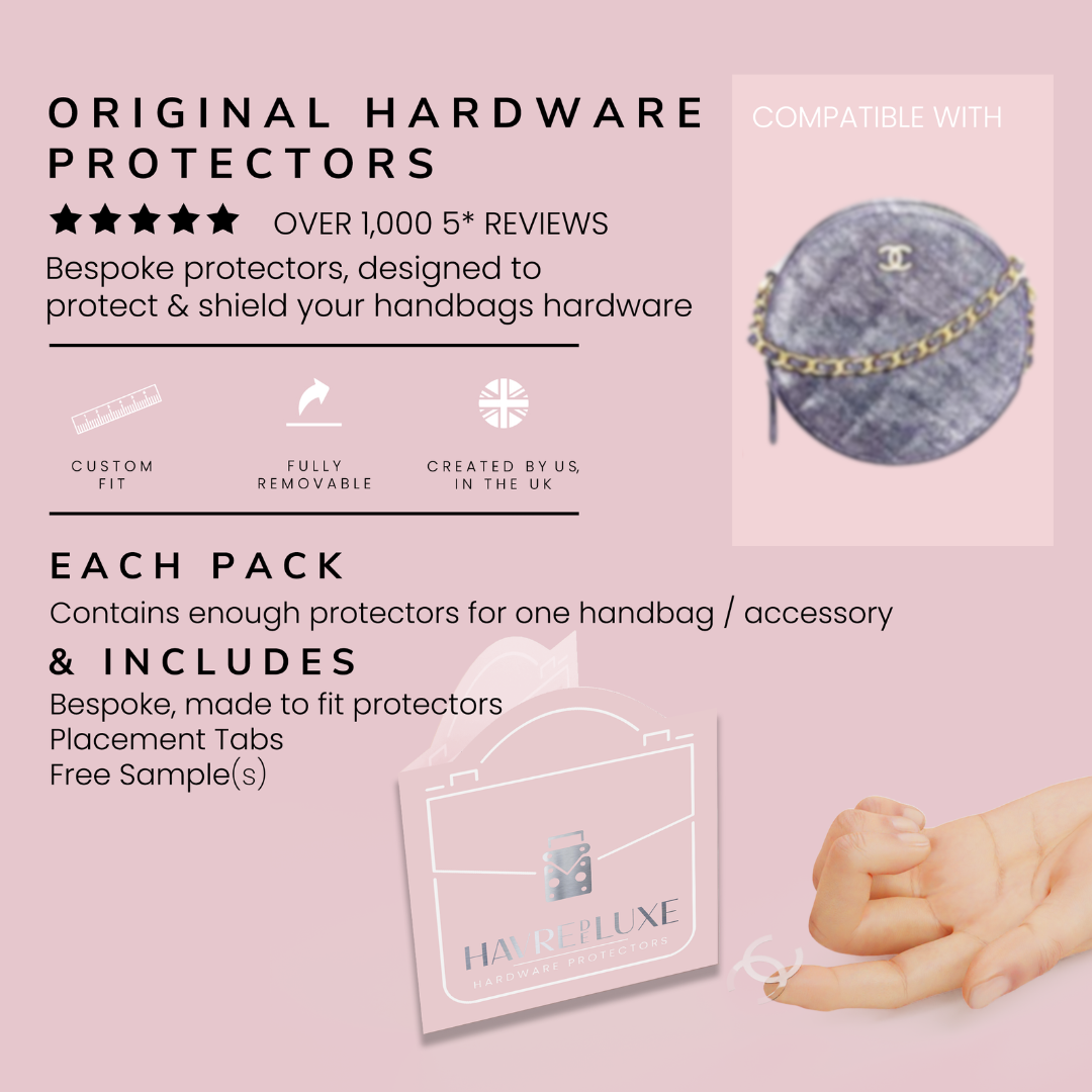 Think of them like phone screen protectors, but for your handbag’s hardware. They are made specifically to preserve the beauty and value of your designer bags.