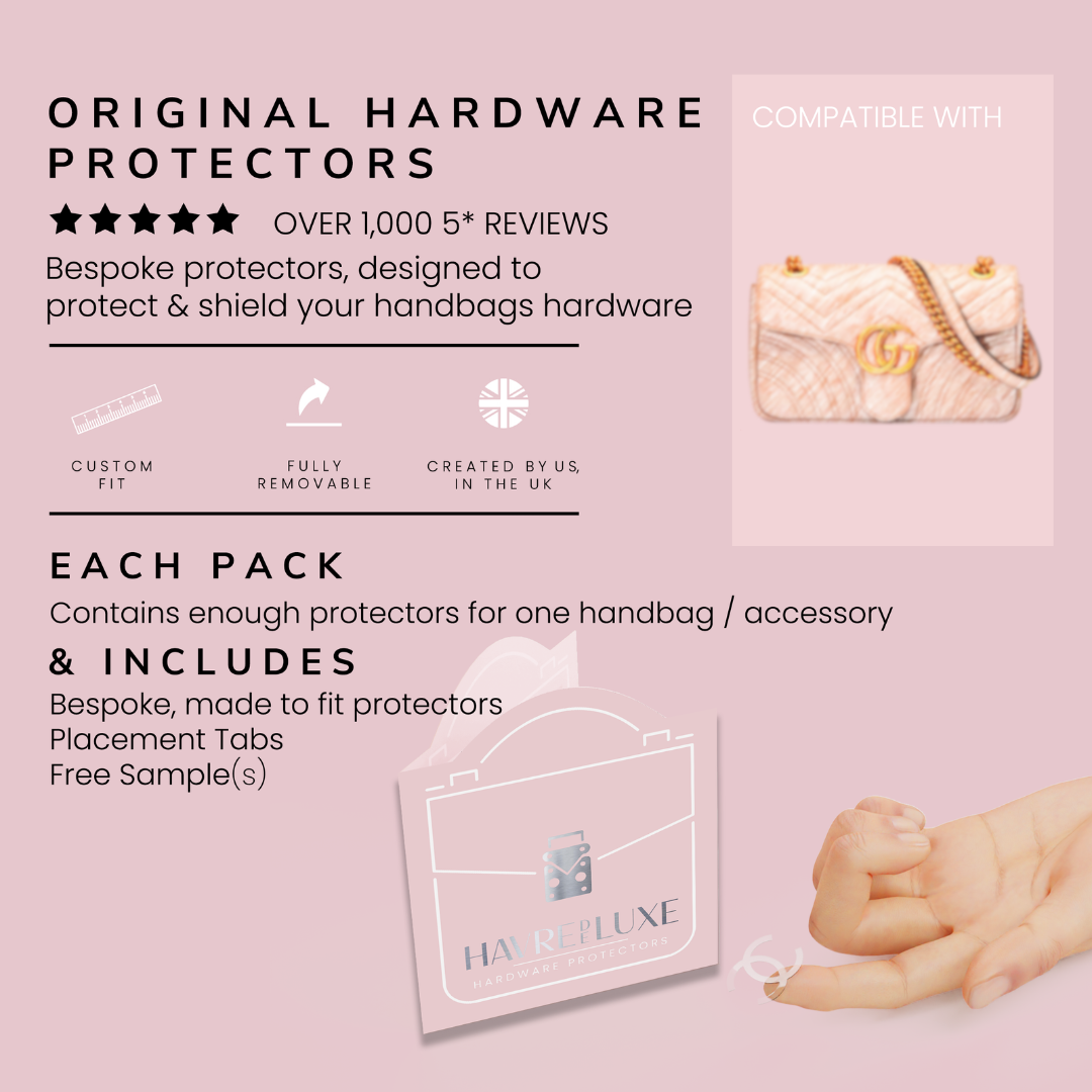 Keep your beloved designer bags and accessories flawless with the original Handbag Hardware Protectors. Protect your investment from scratches and scuffs with our premium, custom-fit hardware protectors.