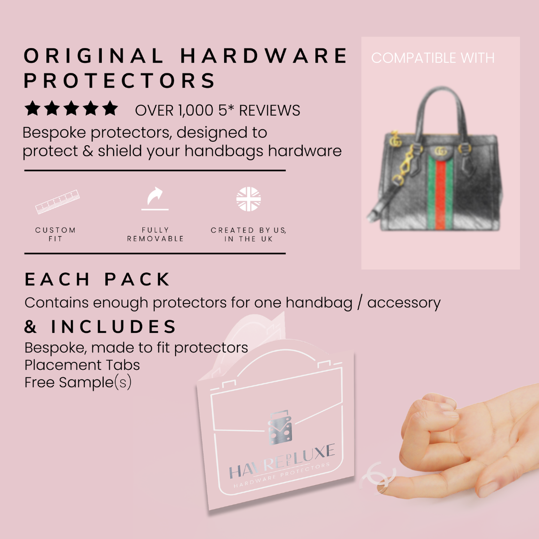 Keep your beloved designer bags and accessories flawless with the original Handbag Hardware Protectors. Protect your investment from scratches and scuffs with our premium, custom-fit hardware protectors.