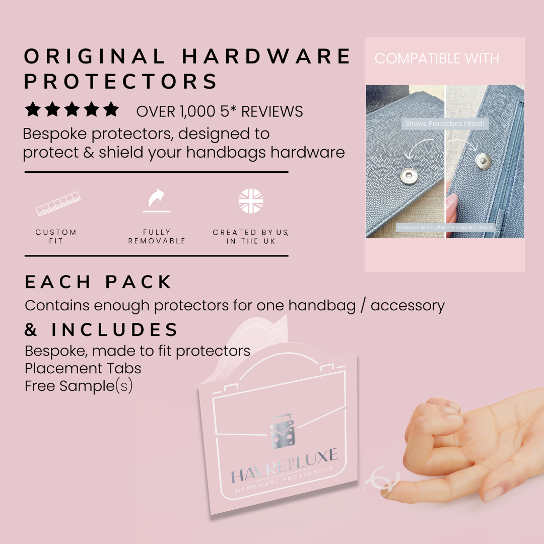 Keep your beloved designer bags and accessories flawless with the original Handbag Hardware Protectors. Protect your investment from scratches and scuffs with our premium, custom-fit hardware protectors.