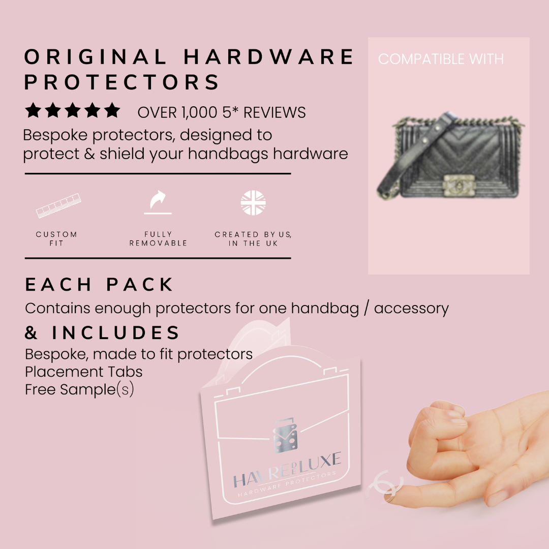 Keep your beloved designer bags and accessories flawless with the original Handbag Hardware Protectors. Protect your investment from scratches and scuffs with our premium, custom-fit hardware protectors.