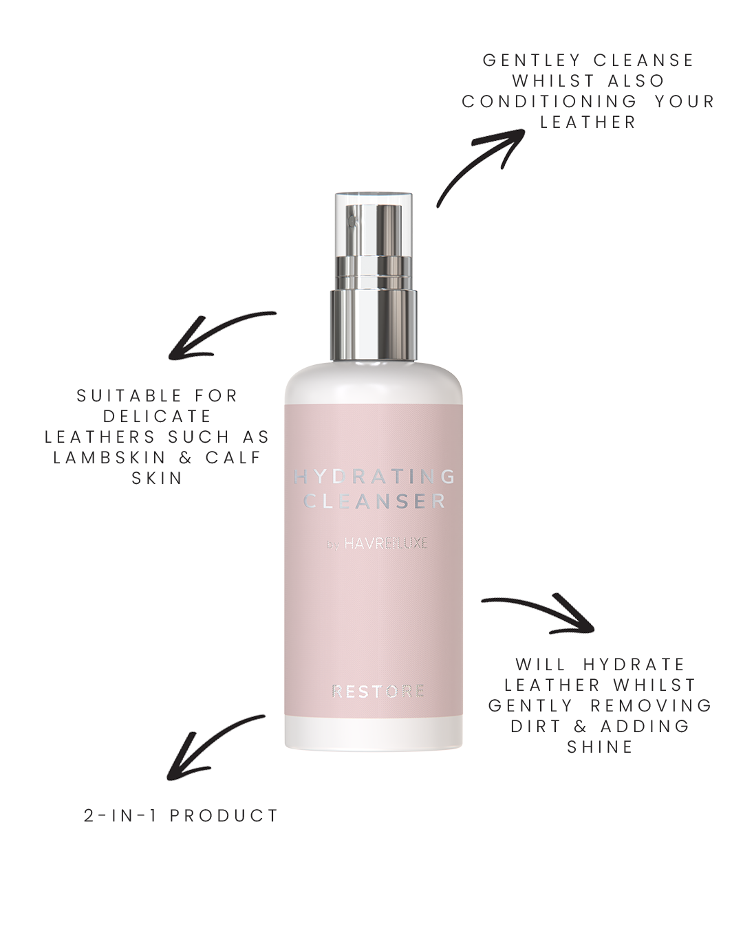 我们的全新产品,首创!我们很高兴推出我们的保湿清洁剂,它可以让您的皮革配饰安全清洁和保湿!
