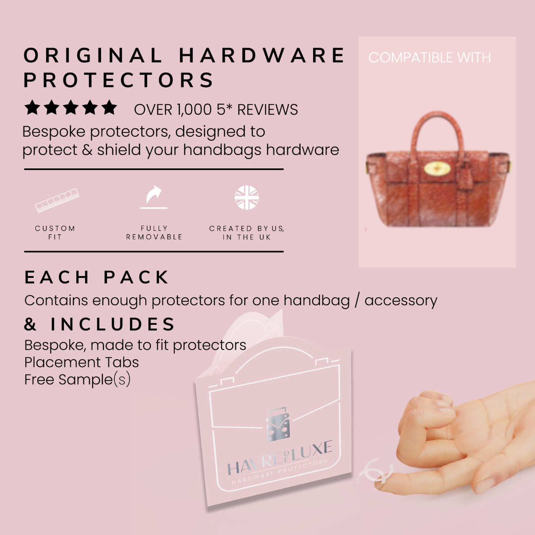 Keep your beloved designer bags and accessories flawless with the original Handbag Hardware Protectors. Protect your investment from scratches and scuffs with our premium, custom-fit hardware protectors.